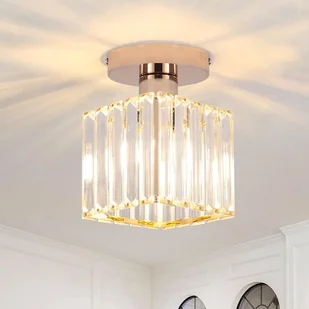 Akcesoria do nowoczesnej lampy sufitowej: Ta kryształowa lampa sufitowa posiada kwadratowy klosz z kryształu K9 i złoty metalowy wspornik. Solidna i o nowoczesnej konstrukcji, trwała i odporna na rdzę. Wymiary: 13 cm z boku x 18 cm wysokości, podstawa sufitowa: 12 cm. 【Wymaga żarówek E27 i ściemniacza】 Ta kryształowa lampa sufitowa do sypialni jest kompatybilna z żarówkami Edison, LED, żarowymi, kompaktowymi fluorescencyjnymi lub halogenowymi z trzonkiem E27 (żarówki nie są dołączone, maksymalna moc: 60 W).