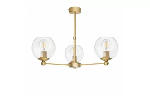 Prosty żyrandol mosiężny z kloszami transparentnymi.