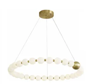 Perla - nowoczesna wisząca lampa LED 60 cm mleczna kula biały złot