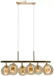 Nowoczesna lampa wisząca 6 punktowa ze szklanymi kloszami. Elementy metalowe wykończone w kolorze złotym. Możliwość regulacji wysokości.