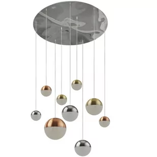 Nowoczesna lampa wisząca z wbudowanym źródłem światła LED osłoniętym akrylem. Dzięki 9 kulom z wieloma kroplami z miedzianym, chromowanym i satynowym mosiądzem lampa wisząca Planets stanowi oszałamiający element centralny każdego salonu lub atrium. Zaokrąglona chromowana płyta sufitowa zawiera przyciągające wzrok kule, które są również wykończone kryształowymi odcieniami piasku. Możliwość regulowania wysokości.