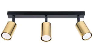Parametry: Materiał: stal Kolor: czarny+złoty Źródło światła: GU10, 3 x max 10W LED Wymiary: 45 x 5 x 18,5 cm Źródło światła w komplecie: nie. Kliknij w link i zobacz ekonomiczne żarówki LED.