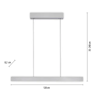 Nowoczesna lampa wisząca LED z elektryczną regulacją wysokości, CCT i pilotemLampa wisząca LED E-Motion marki Paul Neuhaus Pure to nowoczesny i stylowy element oświetleniowy do każdego pomieszczenia. Oprawa wykonana jest z wysokiej jakości aluminium i posiada elektryczną regulację wysokości, umożliwiającą elastyczne dopasowanie do wysokości pomieszczenia. Zintegrowane diody LED zapewniają przyjemne i jasne oświetlenie, które jest nie tylko energooszczędne, ale także trwałe. Zarówno jasność, jak i barwę światła można płynnie regulować za pomocą dołączonego pilota zdalnego sterowania. Górne i dolne światło można przełączać oddzielnie za pomocą powierzchni dotykowej.