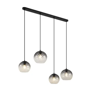 Dimmable, dimmer not included,Nie, bez przewodu i wtyczki Ta lampa wisząca w stylu Art Deco to prawdziwy hit, który bez wysiłku łączy elegancję i charakter. Połączenie głębokiej czerni z tajemniczym przydymionym szkłem tworzy ciepłą, luksusową atmosferę, która natychmiast przenosi Twoją przestrzeń na wyższy poziom. Cztery światła rozpraszają miękkie, rozproszone światło, które idealnie nadaje się na przytulne kolacje, klimatyczne wieczory lub po prostu, aby nadać Twojemu wnętrzu stylowy akcent.