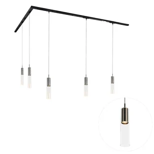 Dimmable, dimmer not included Nadaj swojemu wnętrzu stylowy, industrialny charakter dzięki systemowi oświetlenia szynowego Iconic Lloyd w modnym, ciemnoszarym wykończeniu. Ten nowoczesny system z pięcioma wyrafinowanymi lampami wiszącymi idealnie nadaje się do dodania wysokości i elegancji Twojej przestrzeni. Eleganckie, cylindryczne lampy wiszą gracją na cienkich drutach i zapewniają miękkie, ciepłe rozpraszanie światła, idealne nad stołem jadalnym, w salonie lub nad wyspą kuchenną. Dzięki jednofazowej szynie możesz elastycznie pozycjonować światła i dostosowywać je do swoich preferencji oświetleniowych. Z systemem Iconic Lloyd w kolorze ciemnoszarym stworzysz ponadczasowy, luksusowy wygląd, który idealnie pasuje do industrialnego lub nowoczesnego wnętrza.