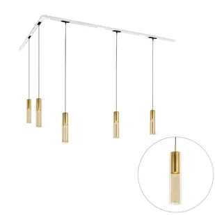 Dimmable, dimmer not included,Nie, bez przewodu i wtyczki Iconic Lloyd: luksus i nowoczesny design w idealnej harmonii! Nadaj swojemu wnętrzu wyrafinowany i elegancki wygląd dzięki systemowi oświetlenia szynowego Iconic Lloyd. Ten biały jednofazowy system szynowy posiada pięć złotych cylindrycznych lamp wiszących, które zapewniają ciepłe i nastrojowe oświetlenie. Połączenie złota i szkła emanuje czystym luksusem, idealnie nadaje się nad stół jadalny, wyspę kuchenną lub do stylowego salonu. Dzięki magnetycznej elastyczności możesz łatwo przesuwać światła do idealnego położenia.