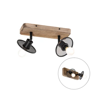 QAZQA Przemysłowy reflektor sufitowy czarny z 2 źródłami drewna - Jasmijn