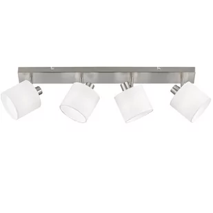 Lampa sufitowa 4 punktowa z materiałowymi białymi abażurami. Elementy metalowe wykończone w kolorze matowego niklu. Możliwość regulacji położenia źródła światła.