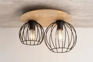 Lampa sufitowa 2 punktowa z drucianymi kloszami wykonana ze sklejki w kolorze dębu w połączeniu z metalowymi, czarnymi elementami. Lampa idealnie wkomponuje się w nowoczesne i loftowe wnętrza.
