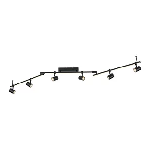 Regulowany reflektor sufitowy LED Barik z przełącznikiem seryjnym Czarna spotowa lampa sufitowa Barik zachwyca technicznie nowoczesnym designem. Sześć spotów lampy sufitowej można obracać i regulować na szynie, co pozwala na ich optymalne ustawienie w pomieszczeniu. Dzięki temperaturze światła wynoszącej 3 000 kelwinów lampa sufitowa emituje przyjemne światło o barwie ciepłej bieli. Szyna, do której przymocowane są spoty, jest również wyposażona w taśmę LED, co dodaje jej jeszcze więcej uroku. Dzięki zintegrowanemu przełącznikowi seryjnemu, przełącznik ścienny może być używany do włączania obu źródeł światła jednocześnie, można włączyć tylko światło na pasku lub tylko spoty.