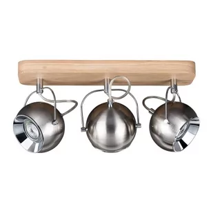 Lampa sufitowa 3 płomienna z regulowanym położeniem źródeł światła. Elementy metalowe w kolorze nikiel satyna oraz w chromie. Podstawa lampy wykonana z drewna dębowego zabezpieczonego olejem podkreślającym jego piękne usłojenie, które posiada certyfikat FSC. Żarówki GU10 LED w komplecie.