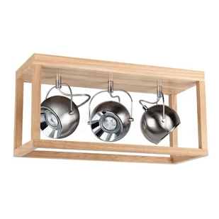 Lampa sufitowa 3 punktowa z regulowanym położeniem źródła światła. Elementy drewniane wykonano z drewna dębowego zabezpieczonego olejem podkreślającym jego piękne usłojenie. Elementy metalowe wykończone w kolorze nikiel satyna.
