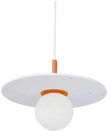 Lampa Wisząca Pluto Small Lampa Wisząca Zesty Orange to dekoracyjny obiekt oświetleniowy o zabawnym designie, który czyni go pięknym dodatkiem do wnętrza. Lampa charakteryzuje się okrągłym kształtem, który znajduje odzwierciedlenie w okrągłym kloszu i kulistej szklanej kuli, która otacza źródło światła. Kolorystyka jest biała i neutralna z ekscytującym kontrapunktem kontrastującego koloru na ramie, co pomaga nadać lampie indywidualnego wyrazu. Szkło rozprowadza światło tak, że cała kula jest oświetlona pięknym blaskiem, podczas gdy klosz kieruje światło w dół, tworząc efektywny downlight. Ponieważ klosz nie schodzi po bokach, światło może również świecić poziomo we wszystkich kierunkach, dzięki czemu Lampa Wisząca Pluto nadaje się do oświetlenia otoczenia na środku pokoju, a także nad stołami i innymi powierzchniami.