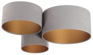 wysokogatunkowa tkanina welurowa, trwałe tworzywo PCV, metal Kolor: szary, wnętrze abażura złote Źródło światła: 3 x E27, max. 60W Żarówki w komplecie: nie Wymiary całkowite: