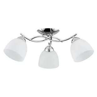 Lampa sufitowa 3 punktowa ze szklanymi matowymi kloszami. Elementy metalowe wykończone w chromie.