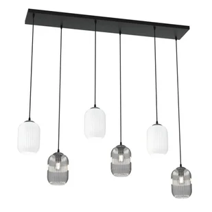 Lampa wisząca 6 punktowa ze szklanymi kloszami w kolorze białym i w kolorze grafitowym. Elementy metalowe wykończone w kolorze czarnym. Możliwość regulacji wysokości. Lampa wisząca Verdi to unikalny element oświetleniowy, który wyróżnia się nieregularnym kloszami w kształcie słoika. To doskonały wybór dla osób poszukujących wyjątkowych i kreatywnych rozwiązań w oświetleniu.