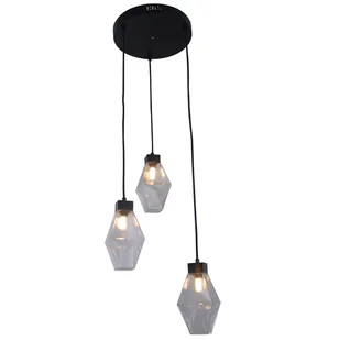Wiszący żyrandol sufitowy, materiał: żelazo + szkło, źródło światła G9 3x, max. moc 5 W, wymiary całkowite: wysokość 145 cm, szerokość 30 cm, wymiary klosza: 11 x 11 x 19 cm, waga 3,8 kg