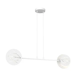 Lampa wisząca 2 punktowa z metalowymi kloszami. Elementy metalowe wykończone w kolorze białym. Możliwość regulacji wysokości. Lampa wyróżnia się geometrycznym designem i unikalnymi laserowymi wcięciami na metalowej powierzchni.