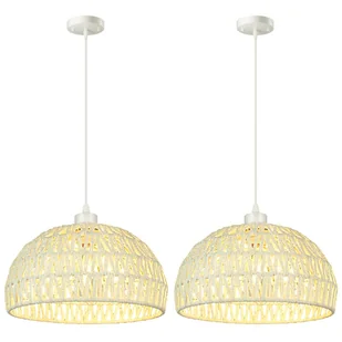 Zestaw 2 rustykalnych żyrandoli z żarówką, lampa wisząca, plafon, lampa wisząca w stylu bohemy, regulowana wysokość, biały, ciepłe światło 3000 K