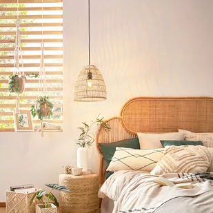 EGLO lampa wisząca Ayesgarth, 1-punktowa lampka do jadalni z rattanu w kolorze naturalnym i metalu w kolorze czarnym, oświetlenie wiszące, oprawka E27