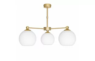 Nowoczesny żyrandol z trzema kloszami białymi matowymi.