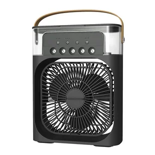 Przenośny klimatyzator cztery w jednym: Ten wentylator jest wyposażony w nawilżacz powietrza i lampkę nocną LED. Wykorzystuje wydajny, profesjonalny silnik bezszczotkowy, który zapewnia większą prędkość, lepszy przepływ powietrza i niższy poziom hałasu. Obniża temperaturę w pomieszczeniu o około 5°C, poprawiając cyrkulację powietrza i utrzymując je w chłodzie, pozwalając Tobie i Twojej rodzinie na spokojny sen w upalne letnie dni. Jest wyposażony w port ładowania typu C i może być zasilany z gniazdka sieciowego, laptopa, zasilacza sieciowego, komputera stacjonarnego lub ładowarki samochodowej.