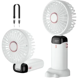 Przenośny wentylator, ładowany przez USB, 5 prędkości z podstawą, bateria 4200 mAh, składany, do biura i na zewnątrz (biały)