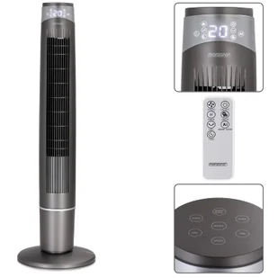 * Automatyczna funkcja inteligentna * wyświetlacz LED z funkcją dotykową * Pilot zdalnego sterowania * 6 ustawień prędkości * 3 tryby: Normalny/Naturalny/Senny * Funkcja timera * Zawirowania powietrza 40 m³/min * Funkcja jonizatoraDane techniczne: * Wymiary (wys. x dł. x szer.): 120x35x35 cm * Materiał: ABS * Moc: