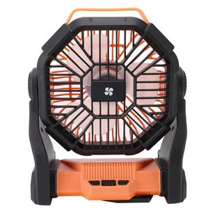 Wydajny, ładowany przez USB, profesjonalny wentylator kempingowy do namiotu z latarką LED w kolorze pomarańczowym