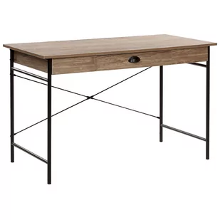 Biurko w stylu industrialnym z szufladą Biurko w stylu industrialnym z ramą krzyżową to doskonały mebel zarówno do nowoczesnych jak i tradycyjnych wnętrz. Wysokiej jakości blat z płyty MDF w kolorze brązowoszarego drewna znakomicie komponuje się z czarnymi solidnymi nogami z malowanej proszkowo stali. Biurko posiada głęboką szufladę, która zapewnia dodatkowe miejsce na ołówki, zeszyty i inne materiały biurowe. Szczegóły: Kolor: Ciemne drewno, Czarny. Materiał: MDF. Dodatkowy materiał: