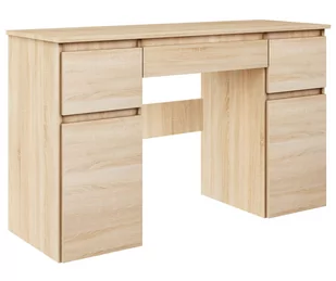 Biurko Megan B1, to doskonała propozycja nie tylko do pokoju ucznia czy studenta, ale również do biur i gabinetów. Wszystkie książki, zeszyty, atlasy czy dokumenty znajdą teraz swoje miejsce. Biurko wyposażone jest w dwie duże szafki i aż trzy szufladki, w których schowasz drobne akcesoria. Duży blat zapewni Ci komfortowe warunki do nauki i pracy, znajdziesz bowiem na nim miejsce na kubek z ulubionym napojem. W komplecie znajdują się wszystkie niezbędne do montażu akcesoria oraz instrukcja.