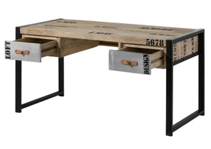 SERIA FACTORY Biurko drewniane Factory #124 Mango + metal Nadruki na blacie Zdjęcia przykładowe Magazyn MP