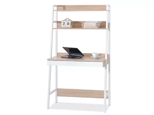 Biurko z półkami VIOREL - białe / dąb sonoma