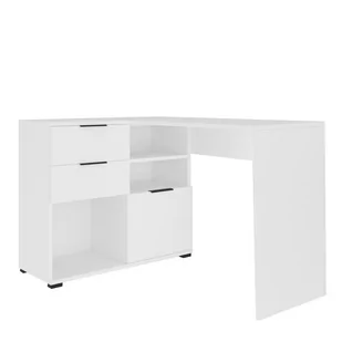 Biurko narożne ABS N4 jest niezwykle funkcjonale i pojemne, zapewnia dużo miejsca do przechowywania i wygodę w użytkowaniu. Biurko składa się z dwóch modułów: komody i biurka, które możesz zmontować na kilka sposobów - dzięki temu z łatwością dopasujesz je do własnych, indywidualnych potrzeb. Uniwersalny projekt pozwala na kilka kombinacji montażu szuflad i drzwiczek do zamykanej szafki. Biurko ABS N4 doskonale sprawdzi się w każdym biurze i pokoju ucznia.