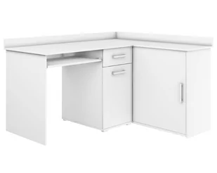 Biurko narożne Michał II, to profesjonalna propozycja do Twojego biura i gabinetu. Biurko możesz ustawić w dowolnym miejscu, ponieważ jest oklejone z każdej strony. Możesz również zmontować biurko w wersji odwrotnej, gdyż jest uniwersalne. Pojemna szafka z przesuwnymi drzwiczkami pomieści dokumenty. Półka na klawiaturę i duży blat roboczy zapewni Ci wyjątkowy komfort i wygodę.