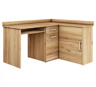 Biurko narożne Michał II, to profesjonalna propozycja do Twojego biura i gabinetu. Biurko możesz ustawić w dowolnym miejscu, ponieważ jest oklejone z każdej strony. Możesz również zmontować biurko w wersji odwrotnej, gdyż jest uniwersalne. Pojemna szafka z przesuwnymi drzwiczkami pomieści dokumenty. Półka na klawiaturę i duży blat roboczy zapewni Ci wyjątkowy komfort i wygodę.