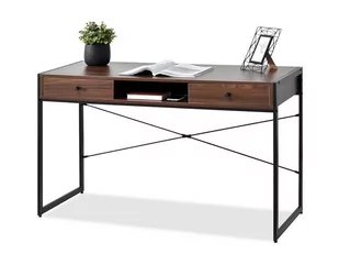 cechy blat prostokątny, z szufladami Kolorystyka kolor blatu: orzechowy kolor korpusu: orzechowy kolor podstawy: czarny przeznaczenie biuro, lokal usługowy, pokój dziecka, pracowania w domu styl wnętrzarski industrialny, nowoczesny Wymiary i waga długość: 48 cm szerokość: