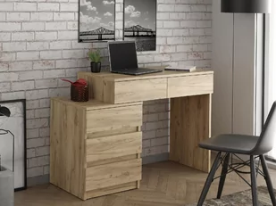 Biurko komputerowe szkolne Gamma dąb craft stolik Kolor: Dąb craft Wykorzystaj przestronność blatu o wym. 90x47cm. Sięgnij po przestrzeń 5 pojemnych szuflad do pomieszczenia wszelkich akcesoriów szkolnych, czy biurowych. Jedno biurko - 2 możliwości montażu! ____________________________________________ Wyjątkowe cechy biurka Gamma: ✅Nowość 2021! Funkcjonalne biurko z aż 5-cioma szufladami ✅Produkowane jest w rodzinnej firmie, w 100% w Polsce - nie jest to produkt importowany ✅Wykonane jest z wysokiej jakości płyty laminowanej o grubości 18mm (a nie z płyty grubości 16mm, jak w wielu podobnych produktach) ✅Krawędzie oklejone zostały tworzywem ABS zapewniającym trwałość produktu i odporność na czynniki zewnętrzne ✅Posiada 5 pojemnych szuflad i wygodny blat ✅Posiada 2 możliwości montażu: