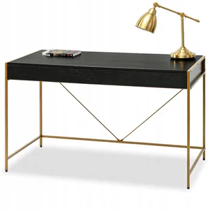 Biurko Z Szufladami Do Domowego Biura Unif Czarne Drewno Złoty