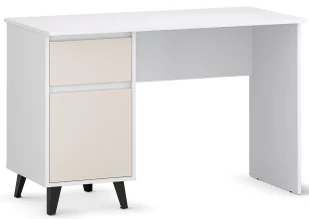 Praktyczna szuflada ułatwia przechowywanie najpotrzebniejszych drobiazgów. Możliwość wyboru strony montażu szafki pozwala idealnie dopasować biurko do przestrzeni. Szeroki blat gwarantuje komfort podczas pracy przy komputerze lub nauki. Skandynawski design nadaje wnętrzu lekkość i naturalny charakter. Materiały, które podkreślają jakość Mebel wykonany z płyty laminowanej z powłoką melaminową, o gęstości do 800 kg/m³, zapewniająca wyjątkową odporność na uszkodzenia mechaniczne oraz odporność na wilgoć i czynniki chemiczne.