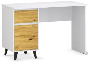 Praktyczna szuflada ułatwia przechowywanie najpotrzebniejszych drobiazgów. Możliwość wyboru strony montażu szafki pozwala idealnie dopasować biurko do przestrzeni. Szeroki blat gwarantuje komfort podczas pracy przy komputerze lub nauki. Skandynawski design nadaje wnętrzu lekkość i naturalny charakter. Materiały, które podkreślają jakość Mebel wykonany z płyty laminowanej z powłoką melaminową, o gęstości do 800 kg/m³, zapewniająca wyjątkową odporność na uszkodzenia mechaniczne oraz odporność na wilgoć i czynniki chemiczne.