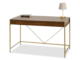 Klasyczne Biurko Z Dwiema Szufladami Orzech Na Złotym Stelażu Unif