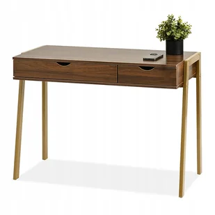 Minimalistyczne Biurko Z Szufladami Orzech Na Złotym Stelażu Lund