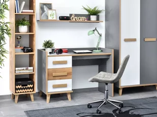 jesionowy przeznaczenie biuro, pokój dziecka, pracownia w domu styl wnętrzarski nowoczesny, skandynawski Wymiary i waga długość: 55 cm szerokość: 120 cm wysokość: 85,2 cm długość blatu: 55 cm szerokość blatu: