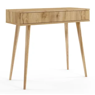 Niepowtarzalnym akcentem jest tu jutowy uchwyt szuflady. Konsola może odegrać różnorodne role w Twoim wnętrzu - od funkcjonalnej konsoli w przedpokoju, przez stylową toaletkę w sypialni, aż po praktyczne biurko młodzieżowe. Odkryj nieograniczone możliwości aranżacyjne! elegancka konsola do przedpokoju na dekoracje i klucze praktyczne biurko do pracy i nauki w pokoju lub gabinecie urocza toaletka do sypialni na kosmetyki i akcesoria Skandynawski styl - najwyższa jakość: wysokie nóżki z litego drewna zapewniają trwałość i piękny efekt wizualny efektowny uchwyt do szuflady ze sznurka jutowego w stylu boho blat i szuflada powstały z trwałej płyty meblowej o grubości 18 mm stabilna konstrukcja gwarantuje komfortowe użytkowanie praktyczna szuflada montowana na prowadnicach rolkowych Poniżej prezentujemy Ci przykładową aranżację z wykorzystaniem mebli z kolekcji Tida: Zobacz wszystkie kolory konsoli Tida 5X klikając w link.