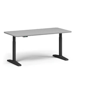 Biurko z regulacją wysokości, 160x80 cm, 2 silniki, zaokrąglone narożniki, czarna podstawa, szary