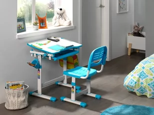 zestaw krzesełko i biurko blat biurka można profilować do kąta 60o biurko można ustawić w kilku wysokościach min. 54 cm a max. 76 cm ergonomiczne krzesełko krzesełko można ustawić w kilku wysokościach min. 33 cm a max. 44 cm szuflada w biurku uchwyty przy biurku antypoślizgowe podkładki pod krzesło i biurko do samodzielnego montażu waga:
