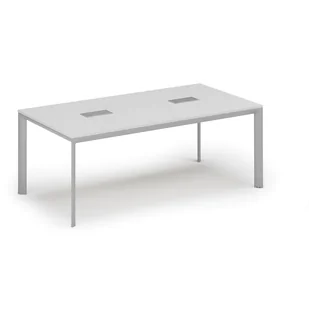Stoły i stoliki do biura Stół PRIMO INVITATION 2000 x 1000 x 740, biały + 2x port blatowy TYP I, srebrny