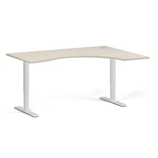 Ergonomiczne biurko z regulacją wysokości, 160x120 cm, 2 silniki, L/P, biała podstawa, brzoza