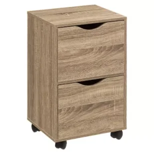 Funkcjonalna mobilna szafka z dwoma szufladami to doskonałe rozwiązanie do przechowywania dokumentów, przyborów biurowych czy innych drobiazgów zarówno w domu, jak i w biurze. Wyposażona w kółka, które umożliwiają łatwe przesuwanie, pozwala na szybkie dostosowanie przestrzeni do aktualnych potrzeb. Stylowy dekor drewniany nadaje jej elegancki wygląd, który wpasuje się w różne aranżacje wnętrz. Szuflady z wygodnymi uchwytami oferują pojemność, która pomoże w organizacji przestrzeni, zachowując porządek i zapewniając wygodę użytkowania. Gwarancja producenta: